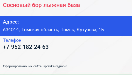 Сосновый бор, лыжная база по адресу 634014, Томская область, Томск, Кутузова, 1Б в дальнейшем Организация, размещена в следующих категориях: