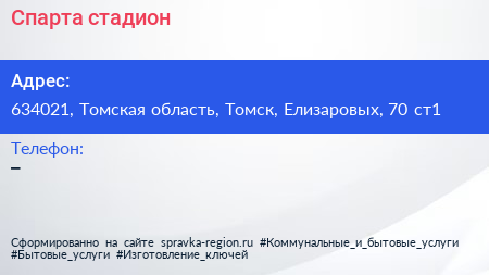 Спарта, стадион по адресу 634021, Томская область, Томск, Елизаровых, 70 ст1 в дальнейшем Организация, размещена в следующих категориях: