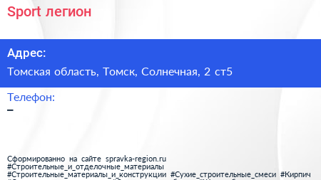 Sport легион по адресу Томская область, Томск, Солнечная, 2 ст5 в дальнейшем Организация, размещена в следующих категориях: