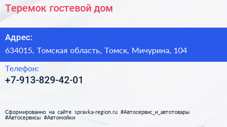 Теремок, гостевой дом по адресу 634015, Томская область, Томск, Мичурина, 104 в дальнейшем Организация, размещена в следующих категориях: