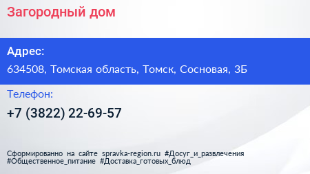 Загородный дом по адресу 634508, Томская область, Томск, Сосновая, 3Б в дальнейшем Организация, размещена в следующих категориях:
