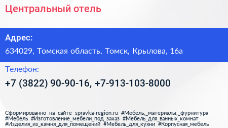 Центральный, отель по адресу 634029, Томская область, Томск, Крылова, 16а в дальнейшем Организация, размещена в следующих категориях: