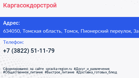 Каргасокдорстрой по адресу 634050, Томская область, Томск, Пионерский переулок, 3а в дальнейшем Организация, размещена в следующих категориях: