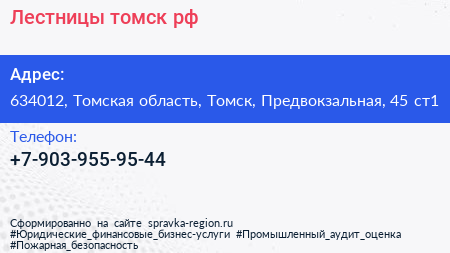 Лестницы-томск.рф по адресу 634012, Томская область, Томск, Предвокзальная, 45 ст1 в дальнейшем Организация, размещена в следующих категориях: