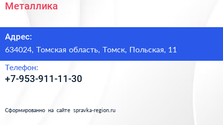 Металлика по адресу 634024, Томская область, Томск, Польская, 11 в дальнейшем Организация, размещена в следующих категориях: