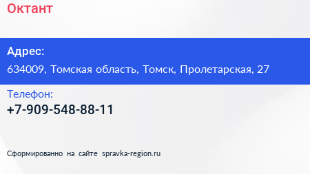 Октант по адресу 634009, Томская область, Томск, Пролетарская, 27 в дальнейшем Организация, размещена в следующих категориях: