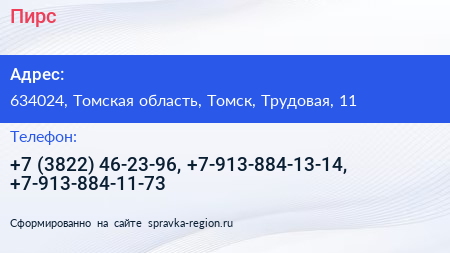 Пирс по адресу 634024, Томская область, Томск, Трудовая, 11 в дальнейшем Организация, размещена в следующих категориях: