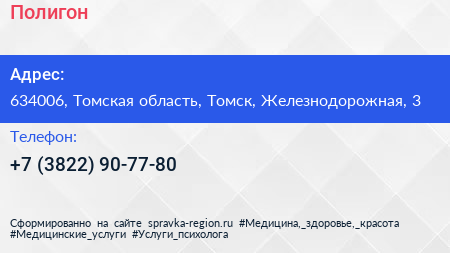 Полигон по адресу 634006, Томская область, Томск, Железнодорожная, 3 в дальнейшем Организация, размещена в следующих категориях: