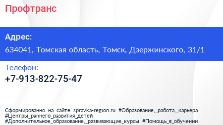 Профтранс по адресу 634041, Томская область, Томск, Дзержинского, 31/1 в дальнейшем Организация, размещена в следующих категориях:
