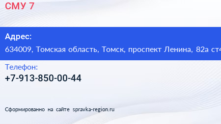 СМУ-7 по адресу 634009, Томская область, Томск, проспект Ленина, 82а ст4 в дальнейшем Организация, размещена в следующих категориях: