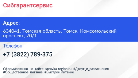 Сибгарантсервис по адресу 634041, Томская область, Томск, Комсомольский проспект, 70/1 в дальнейшем Организация, размещена в следующих категориях: