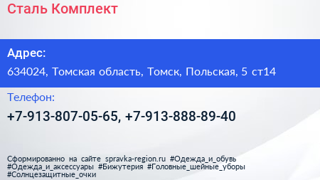Сталь-Комплект по адресу 634024, Томская область, Томск, Польская, 5 ст14 в дальнейшем Организация, размещена в следующих категориях: