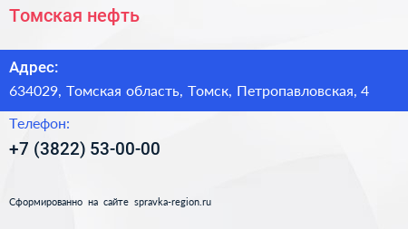 Томская нефть по адресу 634029, Томская область, Томск, Петропавловская, 4 в дальнейшем Организация, размещена в следующих категориях: