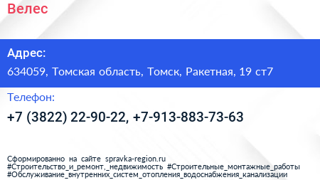 Велес по адресу 634059, Томская область, Томск, Ракетная, 19 ст7 в дальнейшем Организация, размещена в следующих категориях: