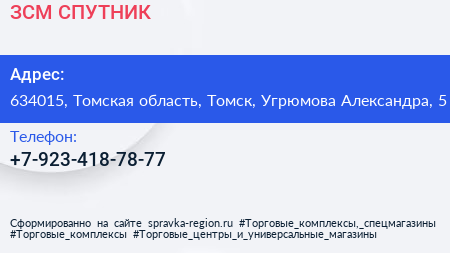 ЗСМ СПУТНИК по адресу 634015, Томская область, Томск, Угрюмова Александра, 5 в дальнейшем Организация, размещена в следующих категориях: