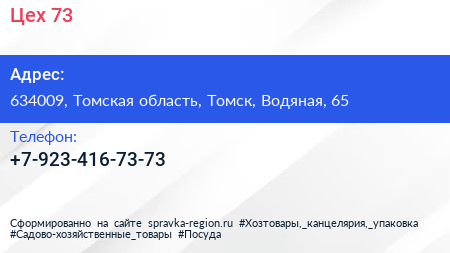 Цех 73 по адресу 634009, Томская область, Томск, Водяная, 65 в дальнейшем Организация, размещена в следующих категориях: