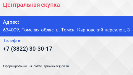 Центральная скупка по адресу 634009, Томская область, Томск, Карповский переулок, 3 в дальнейшем Организация, размещена в следующих категориях: