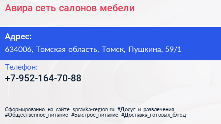 Авира, сеть салонов мебели по адресу 634006, Томская область, Томск, Пушкина, 59/1 в дальнейшем Организация, размещена в следующих категориях: