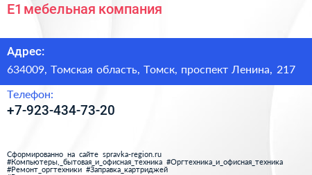 Е1, мебельная компания по адресу 634009, Томская область, Томск, проспект Ленина, 217 в дальнейшем Организация, размещена в следующих категориях: