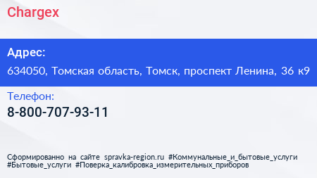 Chargex по адресу 634050, Томская область, Томск, проспект Ленина, 36 к9 в дальнейшем Организация, размещена в следующих категориях: