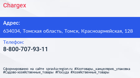 Chargex по адресу 634034, Томская область, Томск, Красноармейская, 128 в дальнейшем Организация, размещена в следующих категориях: