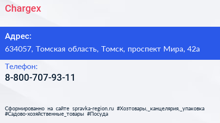 Chargex по адресу 634057, Томская область, Томск, проспект Мира, 42а в дальнейшем Организация, размещена в следующих категориях: