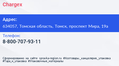 Chargex по адресу 634057, Томская область, Томск, проспект Мира, 19а в дальнейшем Организация, размещена в следующих категориях: