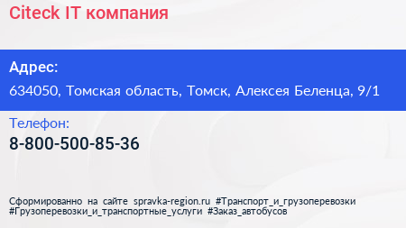 Citeck, IT-компания по адресу 634050, Томская область, Томск, Алексея Беленца, 9/1 в дальнейшем Организация, размещена в следующих категориях: