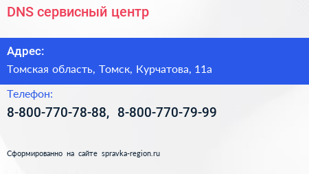 DNS, сервисный центр по адресу Томская область, Томск, Курчатова, 11а в дальнейшем Организация, размещена в следующих категориях: