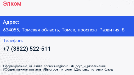 Элком+ по адресу 634055, Томская область, Томск, проспект Развития, 8 в дальнейшем Организация, размещена в следующих категориях: