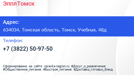 ЭпплТомск по адресу 634034, Томская область, Томск, Учебная, 48д в дальнейшем Организация, размещена в следующих категориях: