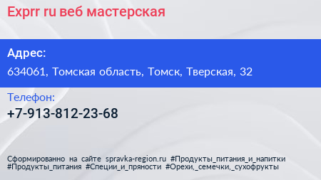 Exprr.ru, веб-мастерская по адресу 634061, Томская область, Томск, Тверская, 32 в дальнейшем Организация, размещена в следующих категориях: