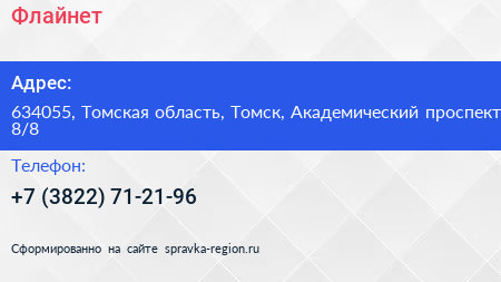 Флайнет по адресу 634055, Томская область, Томск, Академический проспект, 8/8 в дальнейшем Организация, размещена в следующих категориях:
