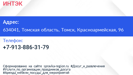 ИНТЭК по адресу 634041, Томская область, Томск, Красноармейская, 96 в дальнейшем Организация, размещена в следующих категориях:
