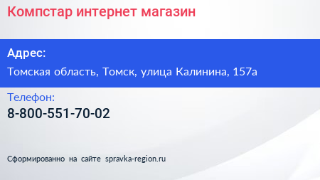Компстар, интернет-магазин по адресу Томская область, Томск, улица Калинина, 157а в дальнейшем Организация, размещена в следующих категориях: