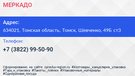 МЕРКАДО по адресу 634021, Томская область, Томск, Шевченко, 49Б ст3 в дальнейшем Организация, размещена в следующих категориях: