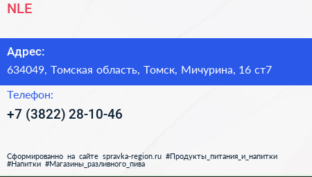 NLE по адресу 634049, Томская область, Томск, Мичурина, 16 ст7 в дальнейшем Организация, размещена в следующих категориях: