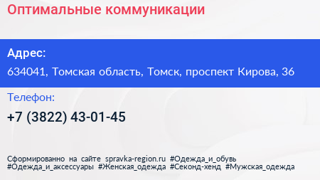Оптимальные коммуникации по адресу 634041, Томская область, Томск, проспект Кирова, 36 в дальнейшем Организация, размещена в следующих категориях:
