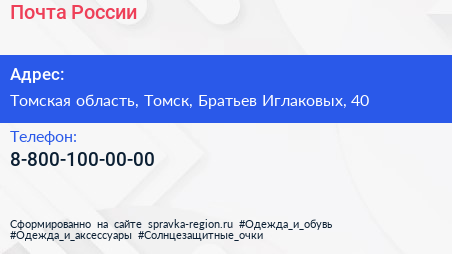 Почта России по адресу Томская область, Томск, Братьев Иглаковых, 40 в дальнейшем Организация, размещена в следующих категориях: