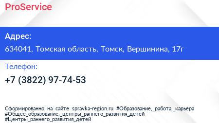 ProService по адресу 634041, Томская область, Томск, Вершинина, 17г в дальнейшем Организация, размещена в следующих категориях: