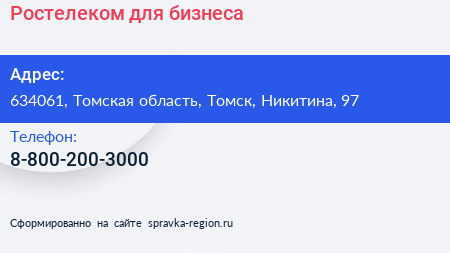 Ростелеком для бизнеса по адресу 634061, Томская область, Томск, Никитина, 97 в дальнейшем Организация, размещена в следующих категориях: