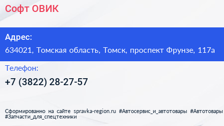 Софт-ОВИК по адресу 634021, Томская область, Томск, проспект Фрунзе, 117а в дальнейшем Организация, размещена в следующих категориях: