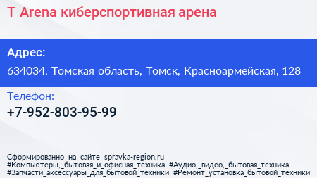 T-Arena, киберспортивная арена по адресу 634034, Томская область, Томск, Красноармейская, 128 в дальнейшем Организация, размещена в следующих категориях: