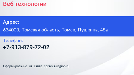 Веб-технологии по адресу 634003, Томская область, Томск, Пушкина, 48а в дальнейшем Организация, размещена в следующих категориях: