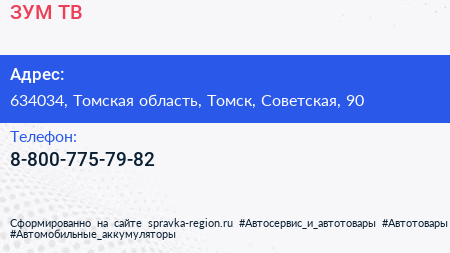 ЗУМ ТВ по адресу 634034, Томская область, Томск, Советская, 90 в дальнейшем Организация, размещена в следующих категориях: