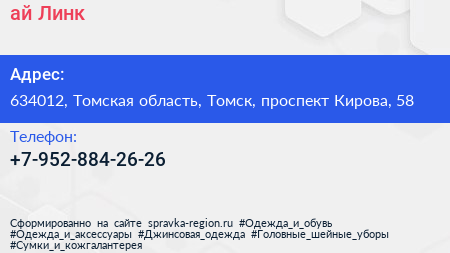 ай-Линк по адресу 634012, Томская область, Томск, проспект Кирова, 58 в дальнейшем Организация, размещена в следующих категориях: