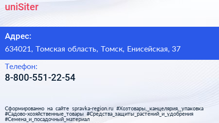 uniSiter по адресу 634021, Томская область, Томск, Енисейская, 37 в дальнейшем Организация, размещена в следующих категориях: