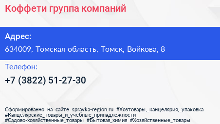 Коффети, группа компаний по адресу 634009, Томская область, Томск, Войкова, 8 в дальнейшем Организация, размещена в следующих категориях: