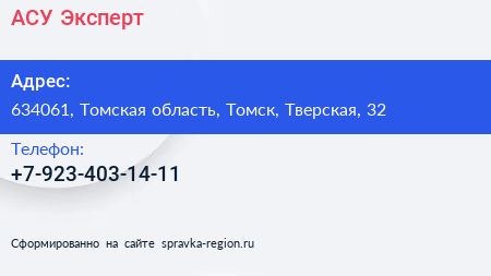 АСУ Эксперт по адресу 634061, Томская область, Томск, Тверская, 32 в дальнейшем Организация, размещена в следующих категориях: