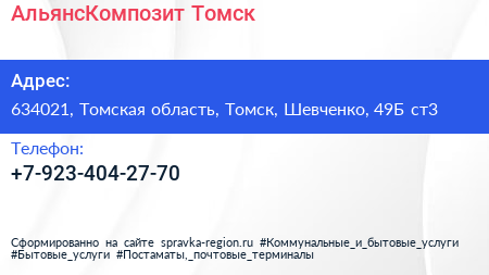 АльянсКомпозит Томск по адресу 634021, Томская область, Томск, Шевченко, 49Б ст3 в дальнейшем Организация, размещена в следующих категориях: